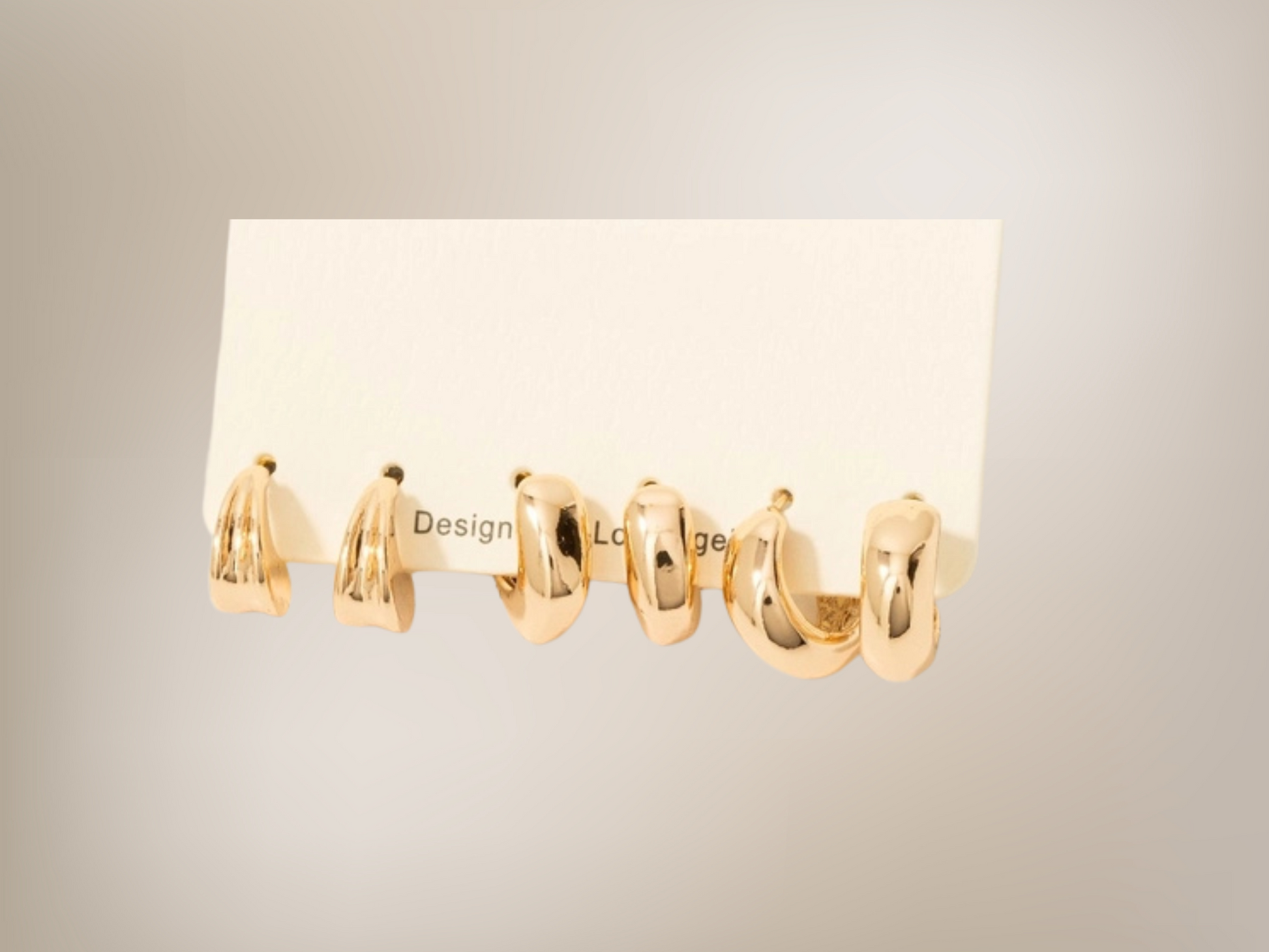 Add a bold touch to any outfit with these small chunky gold hoop earrings! This set of 3, lightweight and comfy, each hoop measures less than 1" —perfect for everyday glam or a night out. Stylish, shiny, and easy to wear all day!