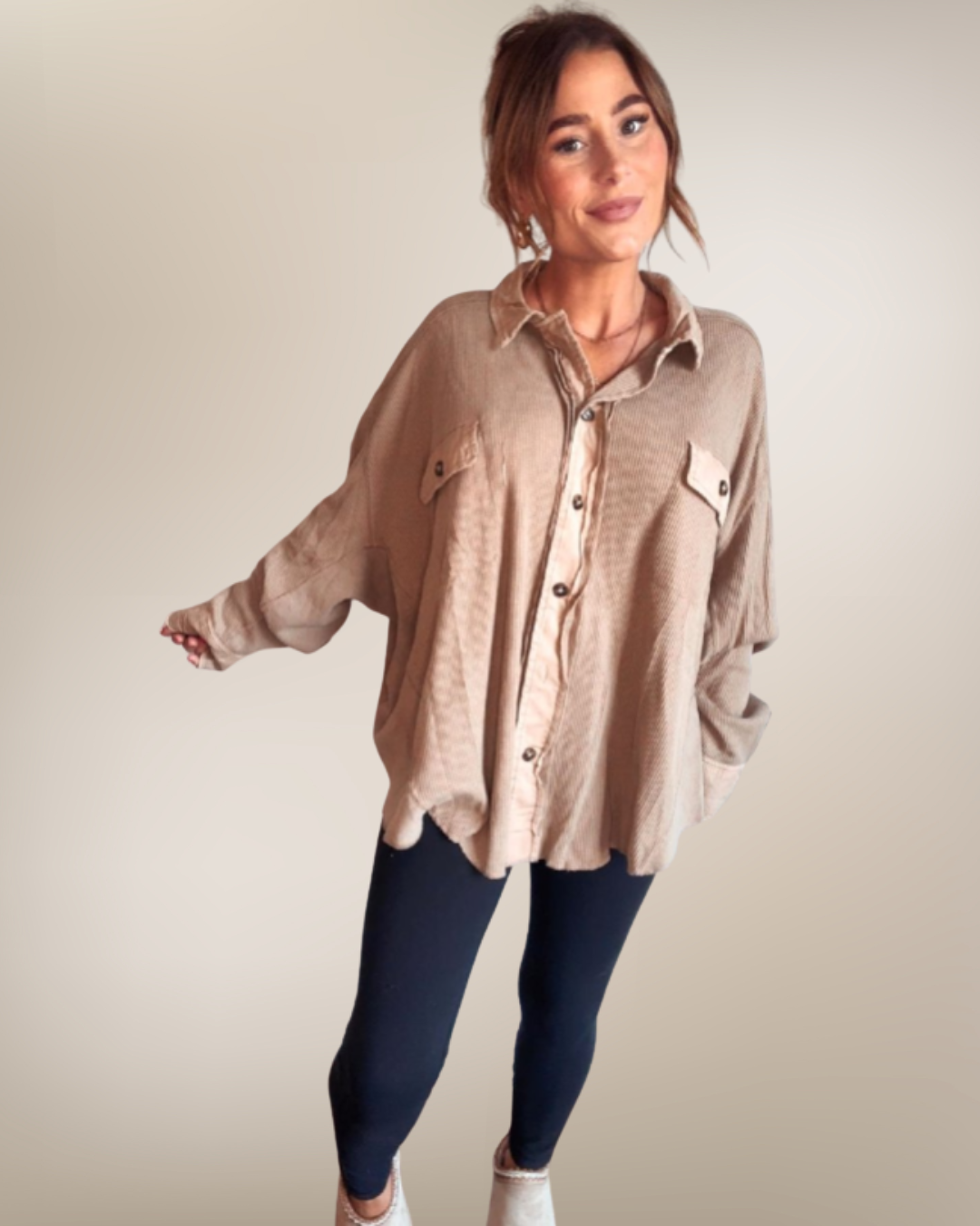 Stay cozy and comfortable in the Toffee Touch Knit Top. Made from soft brown waffle-knit fabric, this long sleeve top offers a relaxed, flattering fit perfect for layering or wearing on its own. Ideal for everyday wear, it pairs effortlessly with jeans or leggings, for a warm, casual look.