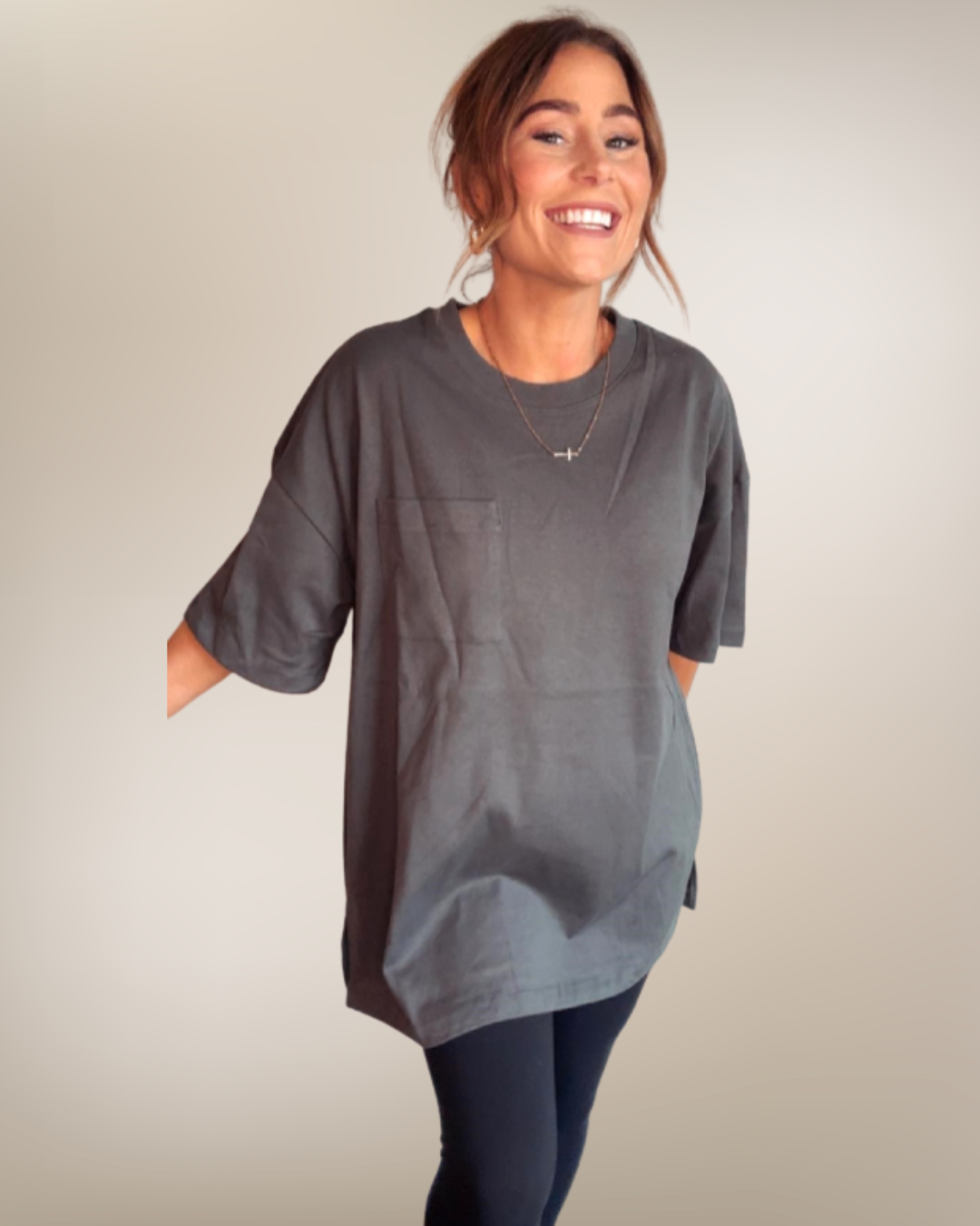 This charcoal pocket T-shirt combines comfort and durability with its thick, high-quality fabric. Designed with a longer length and relaxed fit, it’s perfect for layering or wearing on its own for casual, everyday style.