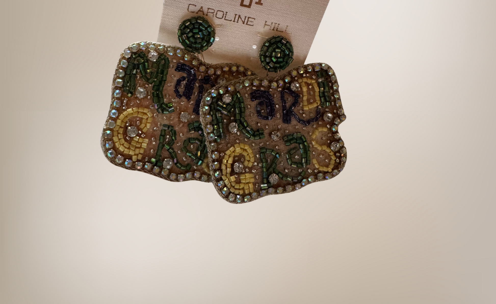 Celebrate in style with these vibrant Caroline Hill beaded Mardi Gras earrings. Lightweight and eye-catching, they feature festive colors perfect for parades, parties, or showing your Mardi Gras spirit year-round.